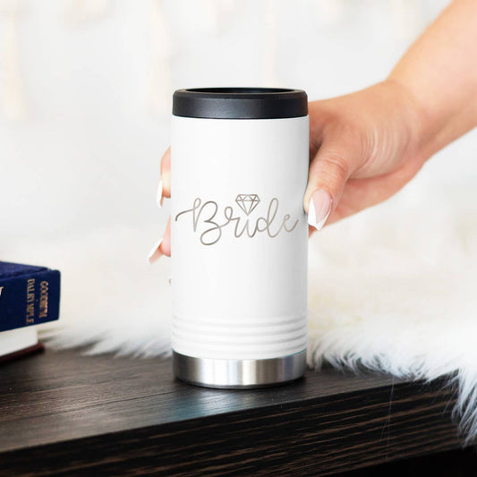 Bride White black Groom Slim Can Beverage Holder Set