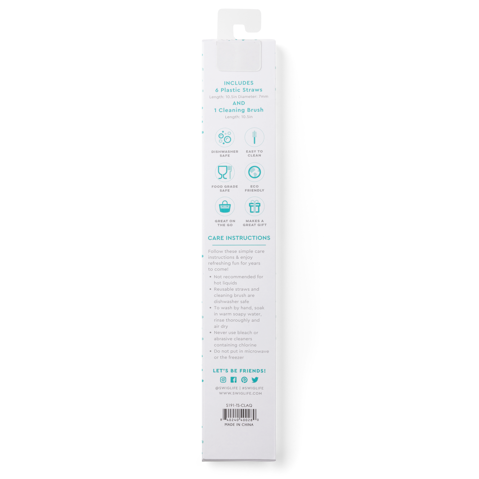 - 4 printed straws, 2 solid color straws, and 1 cleaning brush