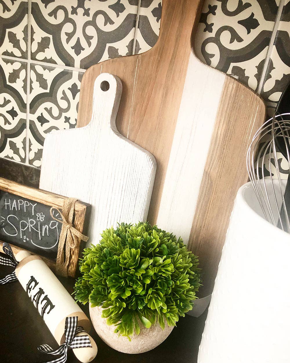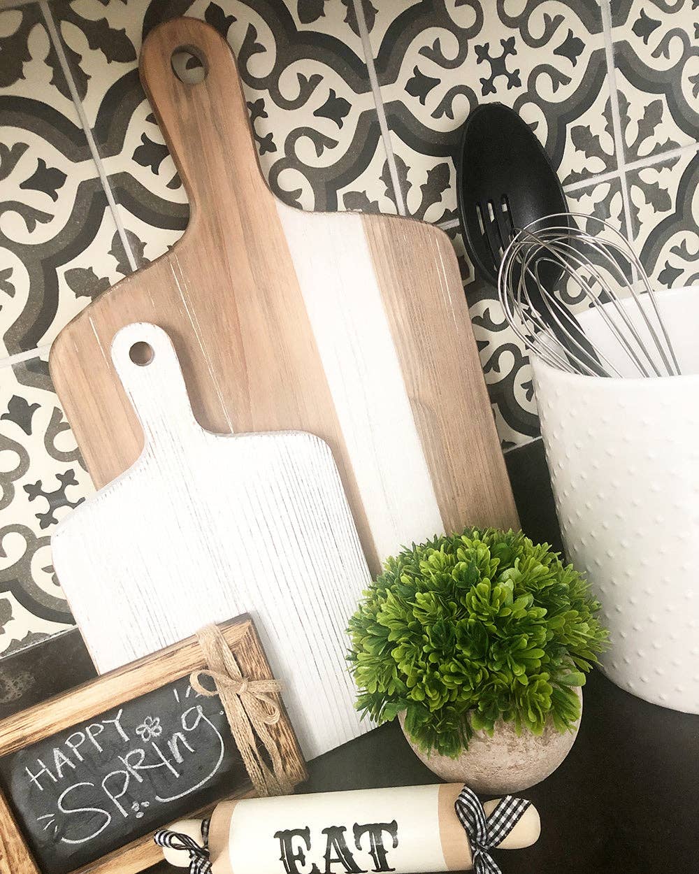 Weathered and worn, this large decorative cutting board is sure to please.