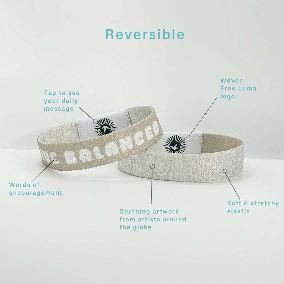 Find your balance with our "Live Balanced" bracelet. Designed to uplift and encourage, this bracelet is more than just an accessory – it's a source of daily motivation and positivity. Simply place your smartphone on the Free Luma logo to pop up your daily message.