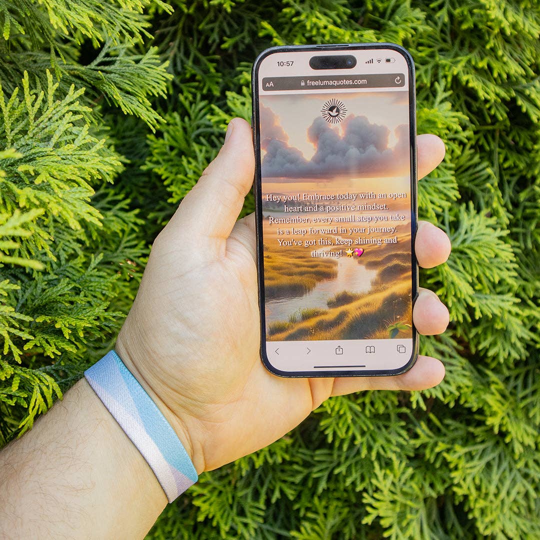 Live your best life with our "Live With Purpose" bracelet. Designed to uplift and encourage, this bracelet is more than just an accessory – it's a source of daily motivation and positivity. Simply place your smartphone on the Free Luma logo to receive a daily Motivational message, a 2-3 minute daily audio meditation and a LumaShort video by a Free Luma team member about the daily post. Like, comment and share your thoughts on the daily post and connect with thousands of other like-minded Free Luma wearers each day! Works with both Android and iPhone and NO APP REQUIRED.